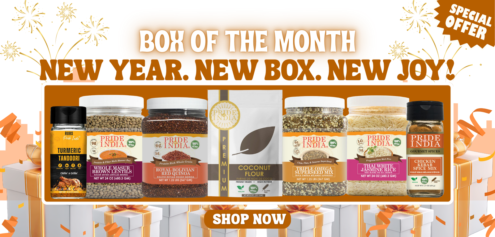 Wishing you a happy and flavorful New Year. Our January Special Box is thoughtfully curated with premium pantry essentials at a great price to inspire comforting meals, joyful baking, and memorable moments. Shop the Box of the Month today and make your New Year cooking truly special.